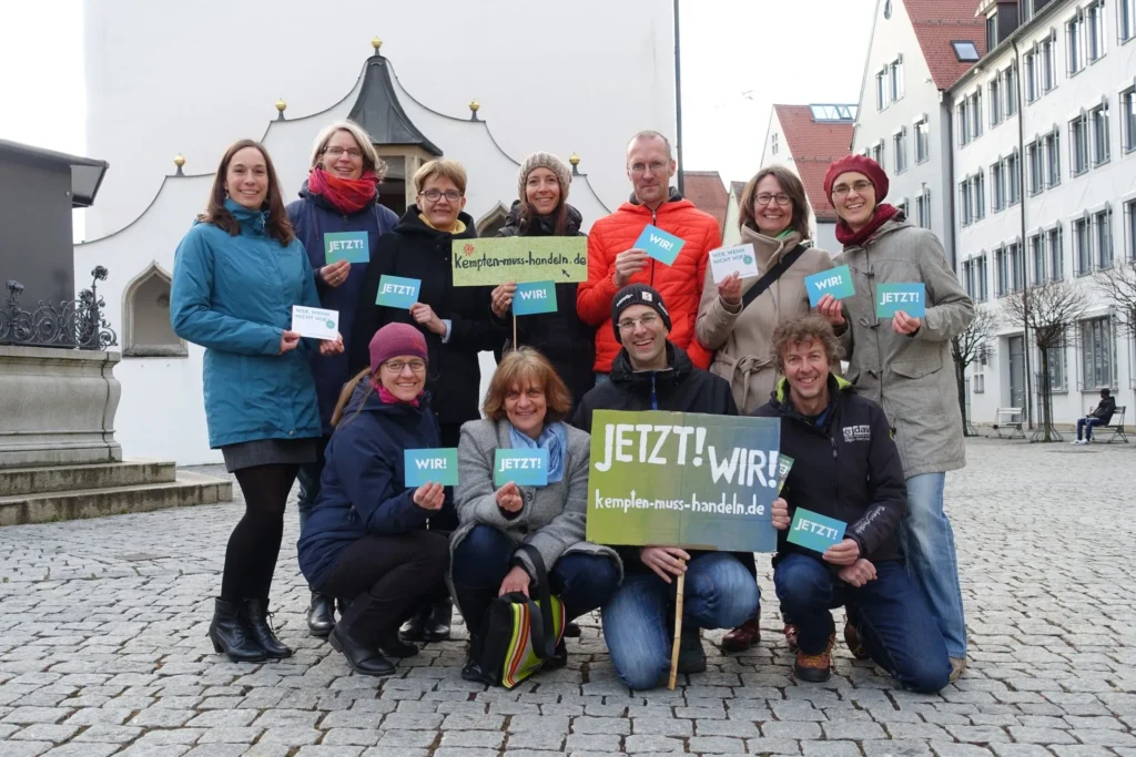 Wir sind weder Verein noch Partei, sondern „einfach nur“ ein Zusammenschluss von Bürger*innen, die sich aktiv für einen nachhaltigen Lebensstil, umweltfreundliche Mobilität, Stadtgrün und Artenschutz in Kempten einsetzen. Wir packen’s an! Mit kreativen Aktionen machen wir uns für eine Stadt stark, in der wir uns alle wohlfühlen. Abwarten und Tee trinken? Rumsitzen und meckern? Von wegen! Wir legen selbst Hand an, um unsere Stadt fit für die Zukunft zu machen. Als ökologisches Netzwerk, Ideenschmiede und Katalysator bringen wir dafür gleichgesinnte Gruppen und Vereine zusammen. Denn gemeinsam erreichen wir mehr.