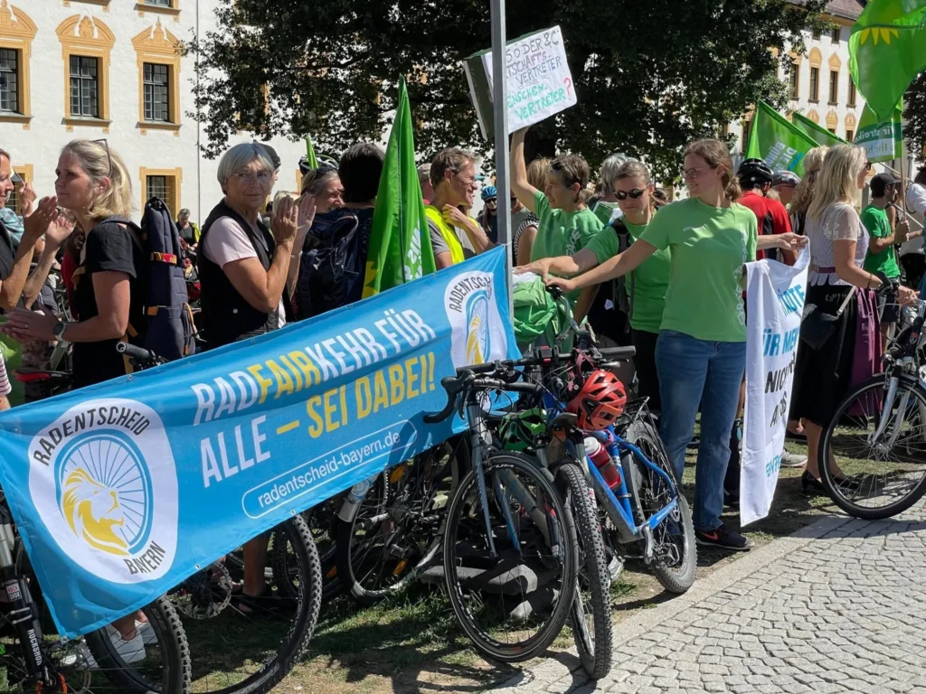 Die Demo zur Eröffnung der Festwoche gegen den Ausbau der B12 zur „Allgäu-Autobahn“ und für die Mobilitätswende war ein voller Erfolg! Richtig viele Leut‘ empfingen den vorbeispazierenden Festzug mit Ministerpräsident Söder und weiteren Ehrengästen mit lautem Fahrradklingeln.