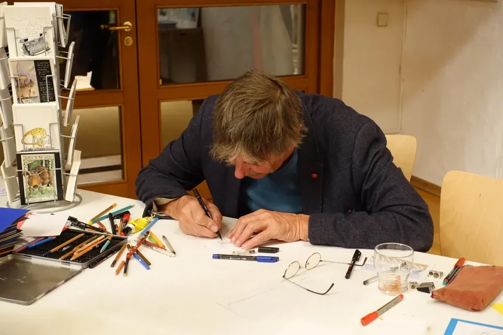 Etwa 40-45 Leute kamen zum Filmabend „Film & Fakten“ am 26.10. Gemeinsam mit der Kirchengemeinde St. Lorenz und der Diakonie zeigten wir den Film „BIGGER THAN US“ von Flore Vasseur. Darin geht es um junge Menschen aus sieben verschiedenen Ländern, die sich für eine bessere Zukunft einsetzen – ob in der Seenotrettung, im Kampf gegen die Vermüllung ihrer Heimat, gegen Beschneidungsrituale in Afrika oder in anderen Bereichen. Viele Themen, die auch in der Karikaturen-Ausstellung „Glänzende Aussichten“ vorkamen.