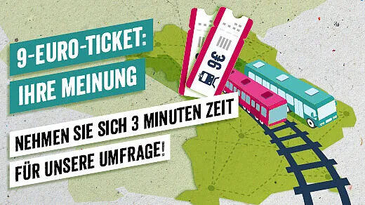 „Das 9-Euro-Ticket hat im Juni die Erwartungen übertroffen. Insgesamt haben sich 21 Millionen Menschen das Ticket gekauft […].“ Haben Sie das Angebot genutzt? Wenn ja, wie oft? Der BUND Naturschutz will Zwischenbilanz ziehen und hat eine (kurze) Umfrage zum 9 Euro-Ticket erstellt.