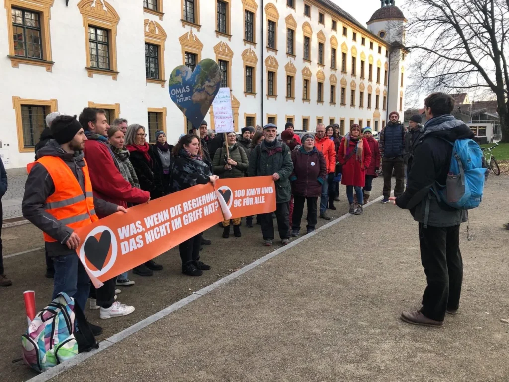 Eigentlich wollte ich nur mal für ein Stündchen reinschauen: Heute, am 11.1.2023, fand im Kemptener Amtsgericht ein Prozess gegen sieben Mitglieder der „Letzten Generation“ statt. Aus den vom Gericht angesetzten zwei Stunden wurden … acht! Und ich bin hängengeblieben. Ich kann hier leider keinen objektiven Bericht schreiben, weil mich das Ganze ehrlich gesagt ziemlich aufgewühlt hat. Schon das massive Polizeiaufgebot vor der Residenz zu Beginn der von Unterstützern organisierten Mahnwache war irritierend – als ob ein Haufen Schwerverbrecher samt gewaltbereiten Unterstützern erwartet wurde! Welch ein Kontrast zu den 40–50 vollkommen friedlichen „Normalos“ aller Altersgruppen, die sich auf den Treppen vor der Residenz versammelte. Im Übrigen verhielten sich auch die Sicherheitskräfte neutral oder sogar freundlich. Aber die Botschaft von „Vater Staat“ kam schon an … (Selbst im Gebäude gab es eine zweite Sicherheitsschleuse direkt vor dem Gerichtssaal, was dem Vernehmen nach nicht üblich ist.)