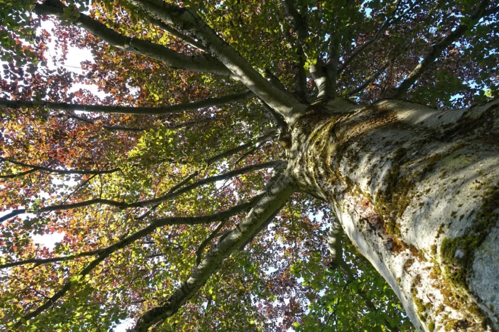 An meinem Geburtstag Ende Juni ist es meistens richtig heiß – einerseits freue ich mich natürlich, wenn die Sonne scheint, andererseits ist es in der Regel viel zu heiß, um am Nachmittag mit meinen Gästen auf unserer Terrasse zu sitzen. Meine Rettung ist – alle Jahre wieder – die mächtige Blutbuche, die gleich neben unserem Haus am Spielplatz steht. Unter ihrem schützenden, tiefroten Blätterdach lässt es sich auch bei größter Sommerhitze bestens aushalten. Diese Blutbuche ist mein absoluter Lieblingsbaum. Ein Traum in Rot – ach, selbst im Winter macht ihre imposante Statur noch was her! Wie viele „Geburtstage“ sie wohl schon erlebt hat?