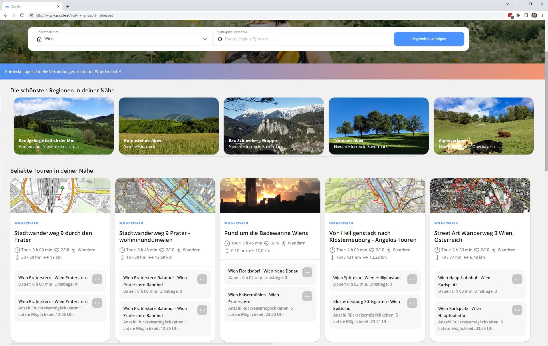 Ich gehe wahnsinnig gerne in die Berge. Ein Wermutstropfen ist für mich aber immer die Anreise mit dem Auto: wegen des verfahrenen Sprits habe ich ein schlechtes Gewissen – und spätestens seit Corona sind die Parkplätze meist überfüllt mit Tagestouristen von Sonstwoher. Zu gerne würde ich mit den Öffis anreisen, aber oft ist das umständlich – oder die Wanderungen, die mein Wanderführer anpreist, sind gar nicht mit Bus und Bahn zu erreichen.