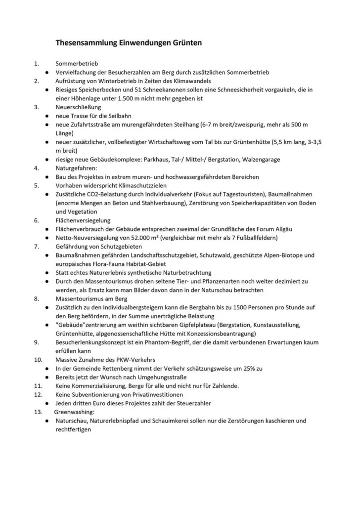 Die Pläne für den Ausbau von Grüntenbahn und -hütte liegen seit Kurzem im Landratsamt und in der Gemeinde zur Einsicht aus. Stellungnahmen und Einwände können bis zum 18. Oktober 2021 im Landratsamt Oberallgäu eingereicht werden. Die Bürgerinitiative „Rettet den Grünten!“ bittet dringend darum, dies zu tun: „Es kommt nun auf jeden Einzelnen von uns an. Diese Mühe wird nicht vergebens sein, jedes Schriftstück wird gesichtet und auch beantwortet. Es hilft außerdem für das folgende Verfahren, es zeigt, dass der Grünten und seine schützenswerte Natur den Bürgen am Herzen liegt und erschwert den Ämtern, diesem Gigantismus zuzustimmen.“ Stellungnahmen am besten per Brief (auch gern handschriftlich) an: