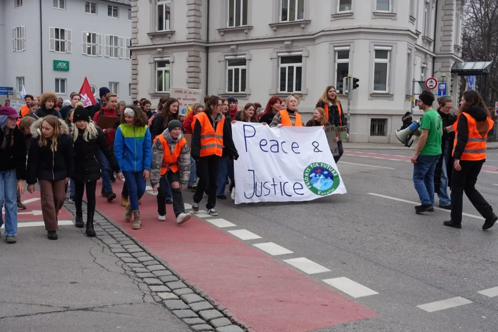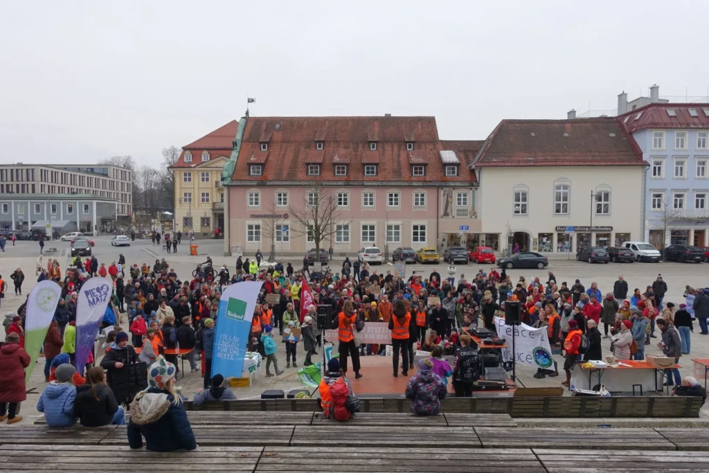 Wir waren da, und wir waren laut! Nachdem es bei den letzten Demos wesentlich ruhiger gewesen war, gingen am Freitag wieder richtig viele Leute für Klimagerechtigkeit, Umwelt- und Klimaschutz auf die Straße: 500 Teilnehmer*innen wurden nach unseren internen Infos gezählt. Die AZ schrieb, laut Polizei seien es 300 gewesen, bitte fragt mich nicht, wie die Diskrepanz von 200 Leuten zustande kommt – vermutlich sind auf dem Weg vom Forum zum Hildegardplatz Menschen dazugekommen oder gegangen? Ist ja letztlich auch egal – das Wetter hat gepasst, die Stimmung war prima, es wurde skandiert, es wurde getrommelt, es gab Tanz, Musik und Wortbeiträge (wie immer grandios: Julius Bernhardt zur Verkehrspolitik im Bund und in Kempten, Martin Mühlegger von Scientists for Future, Letzte Generation, Omas und Health for Future,…), man traf alte Freunde und lernte neue Mitstreiter kennen, wie das halt immer so ist auf den Klimastreiks.