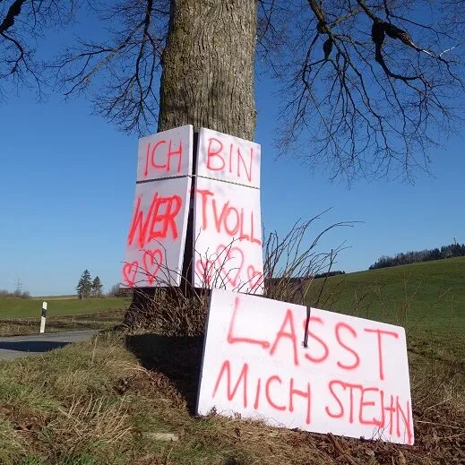 Ab und zu schafft man’s doch, einen Baum vor der Kettensäge zu retten. Ein paar Baumfreunde haben am Montag eine spontane Rettungsaktion an der OA19 bei Dietmannsried gestartet: